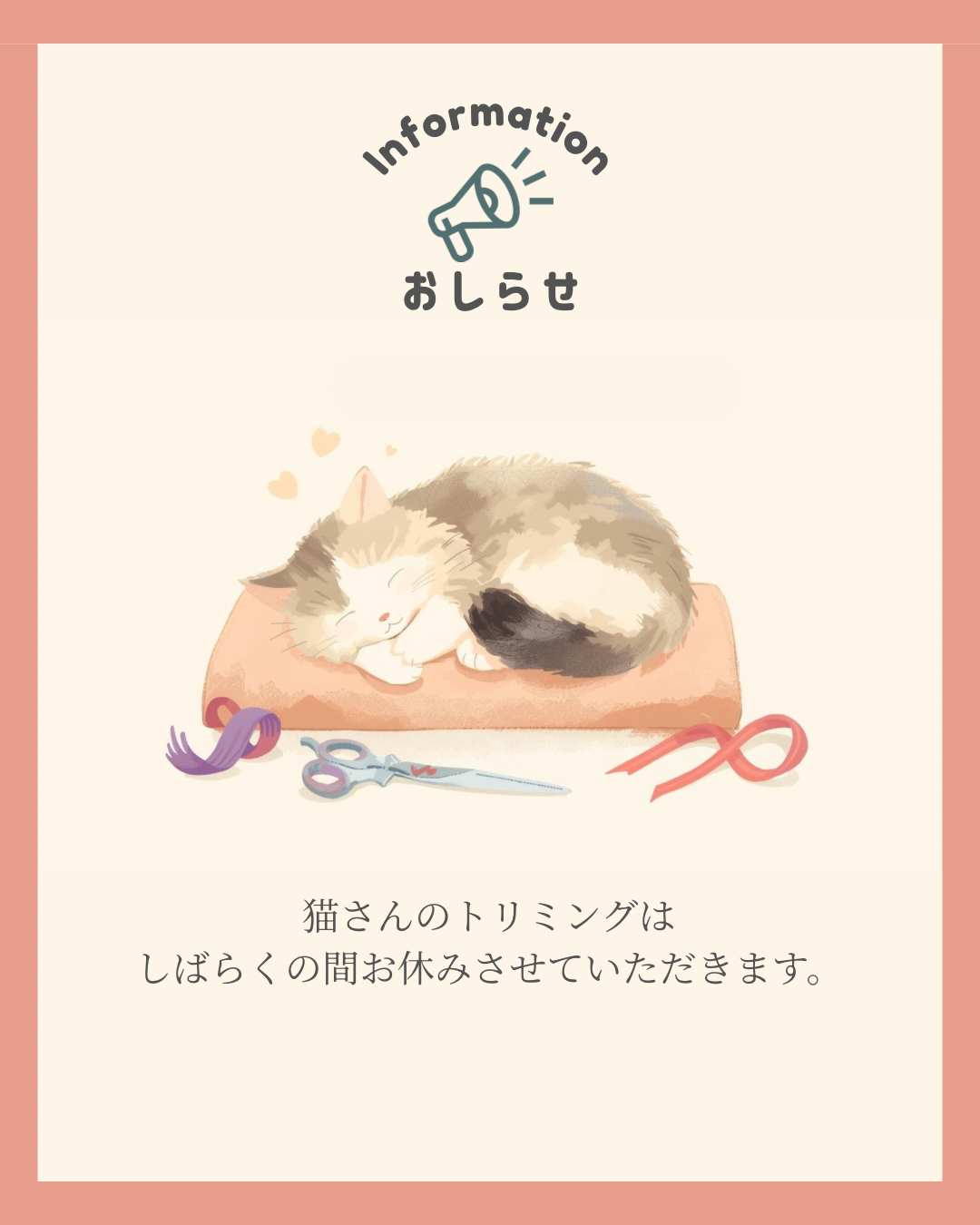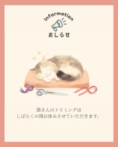 猫のトリミング休止のお知らせ
